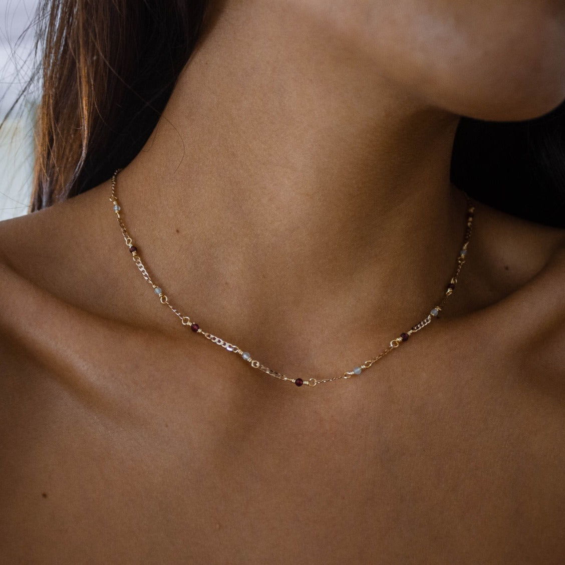 Collar Gea Granate & Aguamarina